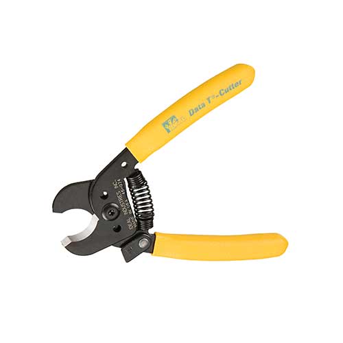 The Data T®-Cutter tool is a small and compact yet efficient hand actuated cable cutter with dual curved blades and a shearing cutting action which are recommended for cutting coax and other copper based low voltage cables. The curved blades minimise cable deformation, which helps keep the cable impedance (?) consistent during connector to cable termination, and allows cable stripping tools to work more efficiently and accurately.