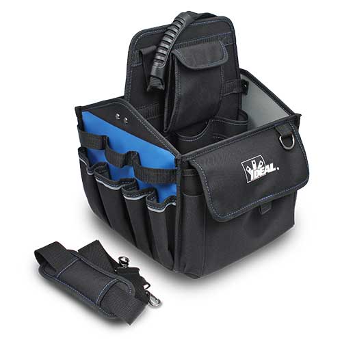 The IDEAL® Pro Series Premium Tool Carriers feature a sturdy and lightweight design for organizing and transporting tools. Multiple internal and external pockets allow you flexibility in storing what you need for every job while premium features keep your space clean and visible.