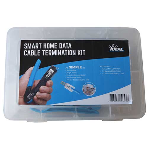 The versatile FT-45 Modular Crimp Tool simplifies terminations and increases first time success rates. The single crimp cavity for RJ-45 / 8-position connectors is capable of crimping IDEAL feed-thru, standard, shielded and unshielded connectors for CAT5e, CAT6 and CAT6A allowing users to control costs by easily maintaining a single crimp tool, instead of purchasing a new one for different types of RJ-45 connectors. The replaceable heavy-duty cutting blade will last for more than 2000 cuts. The FT-45 also requires less than ½ of the mechanical force of traditional crimpers to squeeze the handle closed and crimp the connector. No ratchet mechanism is needed and one- handed crimping is possible. Additionally, the FT-45 includes 568A and 568B wiring schemes marked on the tool for ease of use.
